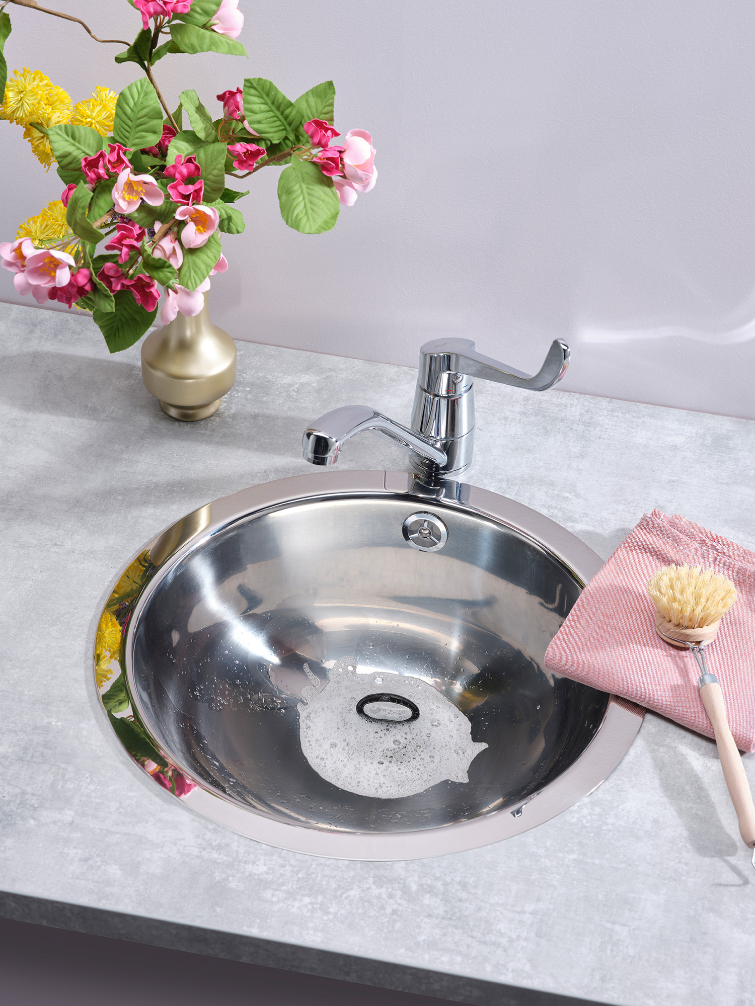 REGINOX Armaturen gibt es in denselben Farbgebungen wie die SpĂŒlbecken und in mehreren Formen und AusfĂŒhrungen: rechtwinklig, bogenförmig, L-förmig, mit Schlauchbrause bzw. Auszug-Auslauf sowie mit langem, leicht gebogenem Hebel dafĂŒr bestimmt, auch mal einfach mit dem Ellenbogen bedient zu werden.